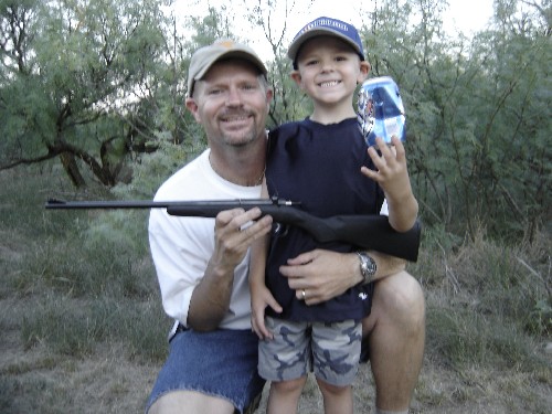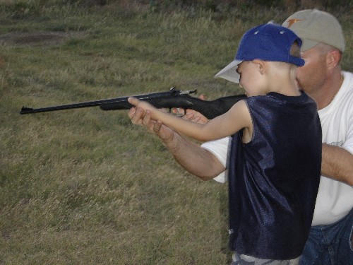 Rance teaching his son Bryce at 5 years old to shoot his first gun a .22 Cricket. |