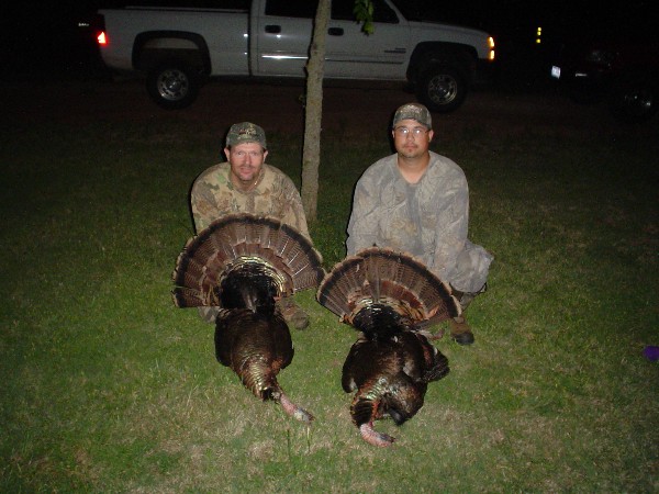 Rance and a buddy Clint with a pair of North Texas toms. |