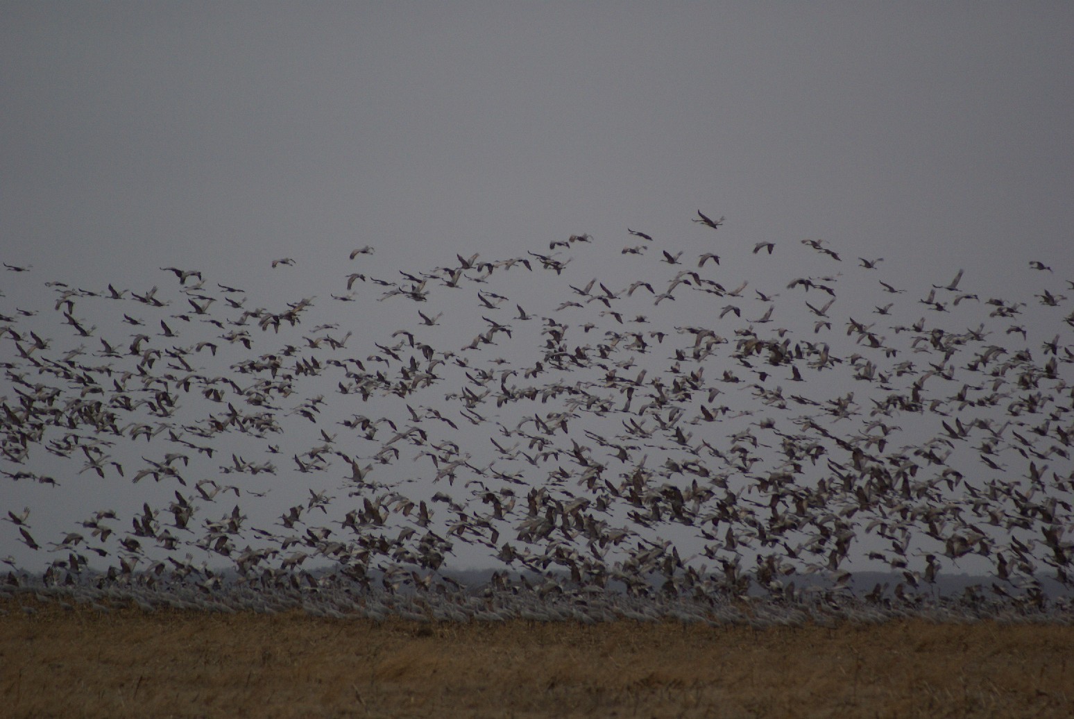 A milo field full of Sandhill Cranes. |
