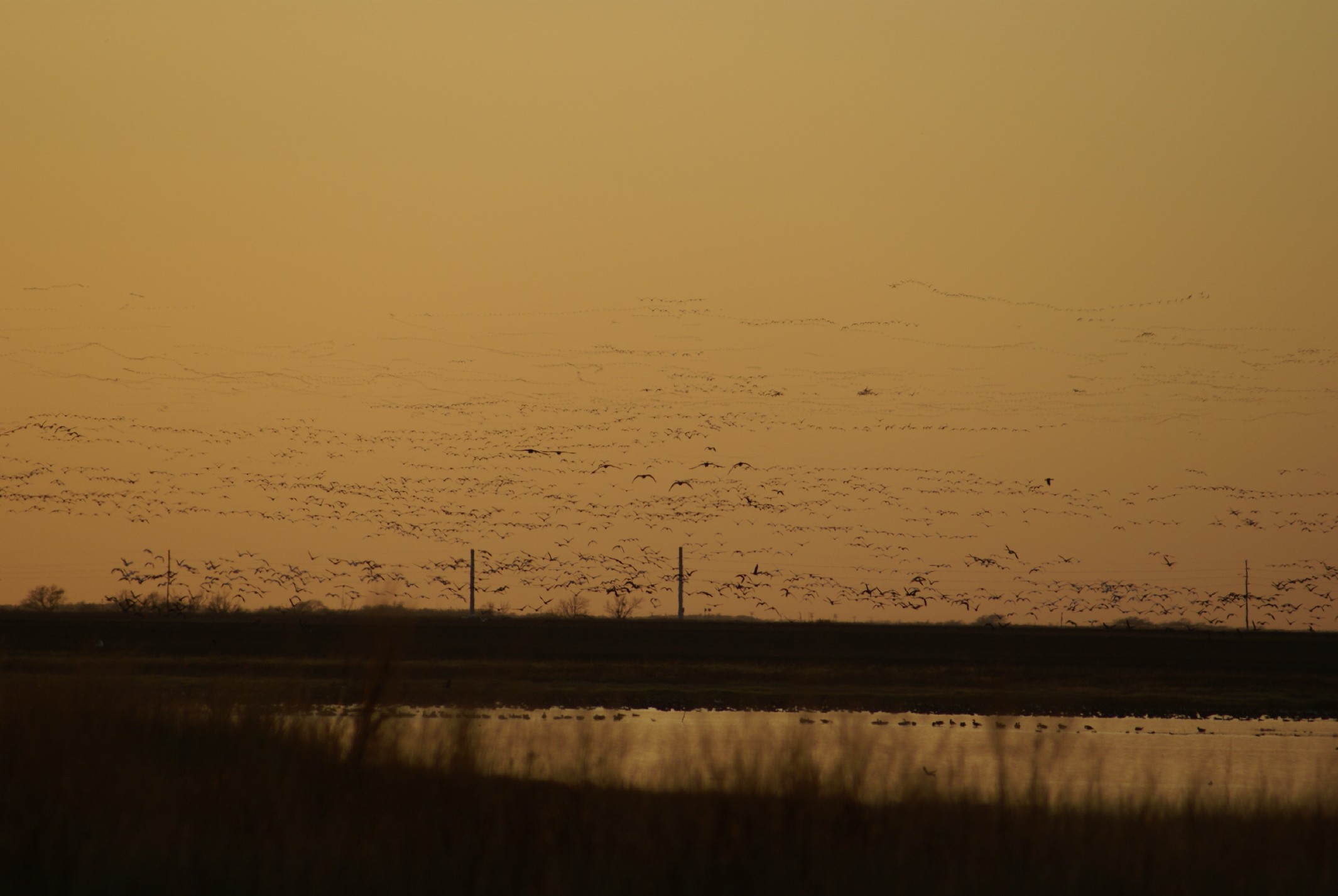 Lots of Geese leaving the water at Ranger Creek Ranch. |